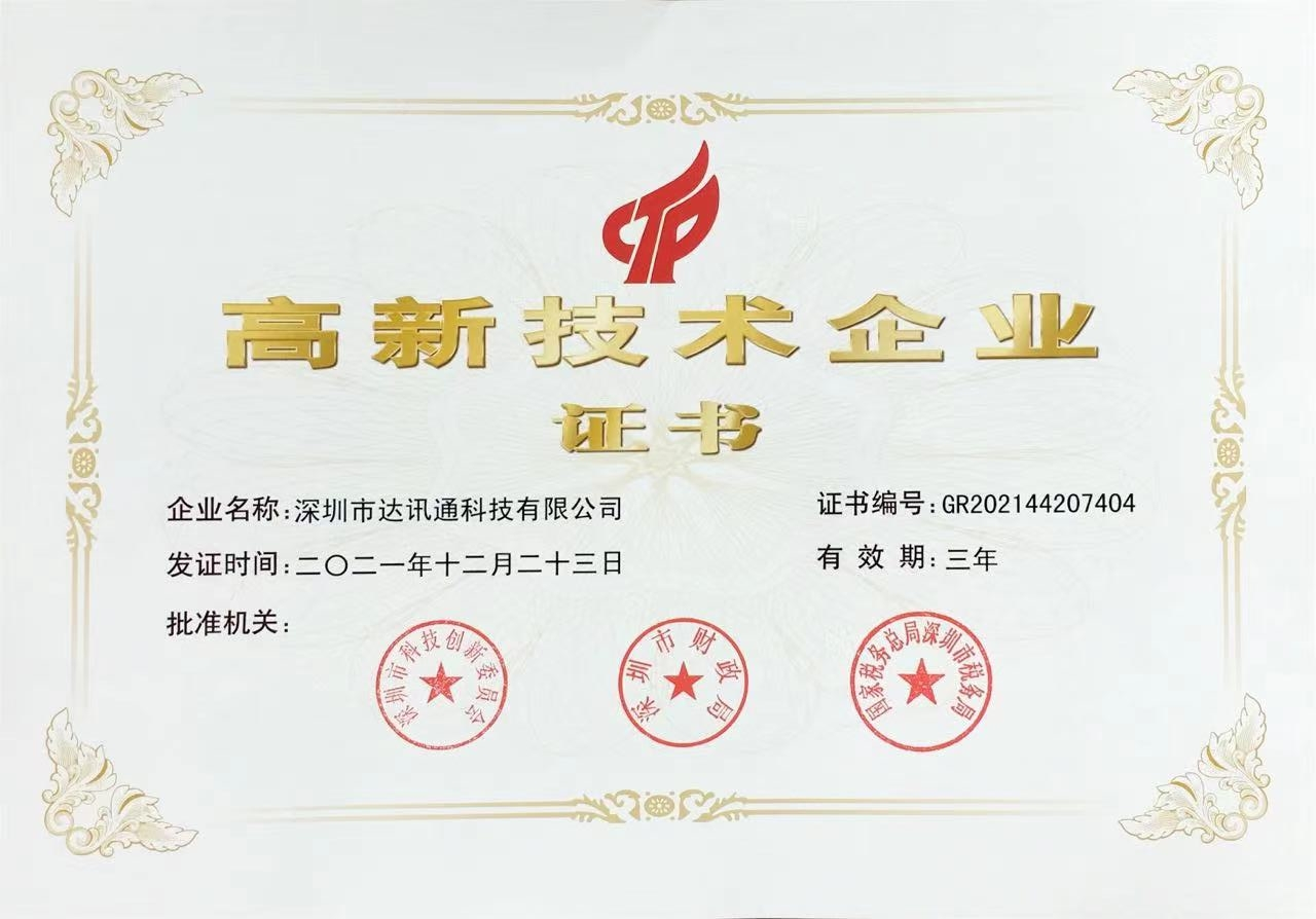 欢迎进入公司资质 - 深圳市达讯通科技有限公司网站